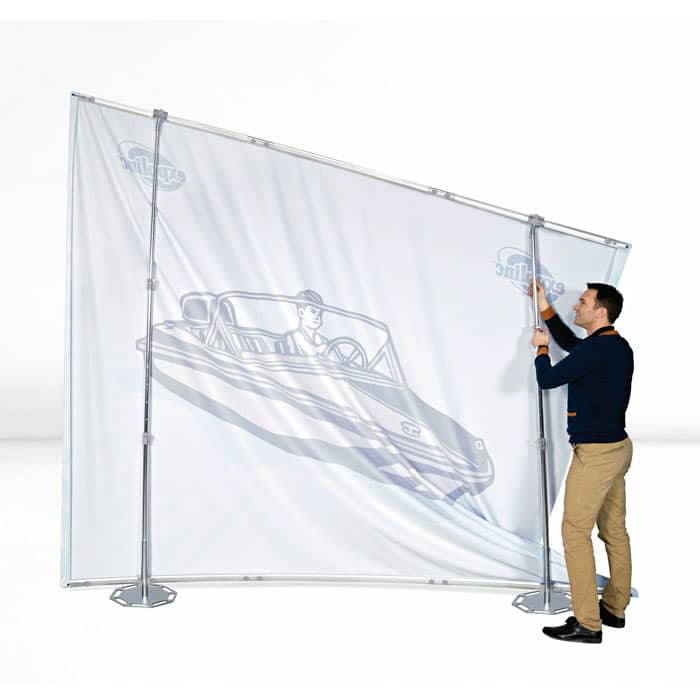 Fabric System finns att välja i två stycken utformningar. Antingen med raka väggar eller med svängd som går att välja som innersväng eller yttersväng. Systemet är ett hållbart alternativ då du endast behöver byta ut ditt motiv och kan istället återanvända ditt systemet. Vid montering av Fabric System ska motivet monteras i arbetshöjd innan den spänns upp till den höjd som önskas.